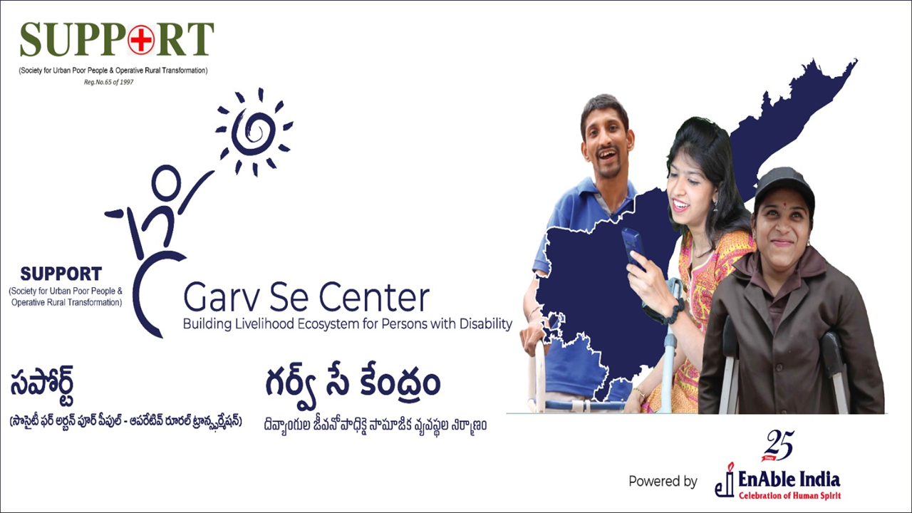 During 2024-25, SUPPORT in collaboration with Enable India, Banglore and RSETI, Nellore initiated PwDs Rural Livelihoods Programme in Nellore District. The programme aims to create eco-system and develop Entrepreneur Skills through EDP Trainings for the persons with disabilities and extended mechanism to create the appropriate livelihood opportunities for their sustainable living standards. During 2024-25 and 2025-26, in convergence with District Rural Development Agency and Local Banks, SUPPORT has facilitated 142 PwDs to avail loaning and create livelihoods in the areas. Supported by: Enable India-Banglore - RSETI-GoI-Nellore
