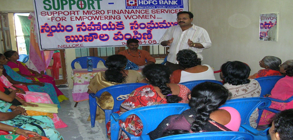 Micro finance activity to lend money for small investment needs for the vulnerable women and disabled in the district for various livelihood activities with a portfolio of 2.5 Crore during 2007 - 2012. Through this initiative, 138 vulnerable dalith women accessed the loan and invested for various enterprises in the rural areas of Nellore and leading sustainable life with self-dignity. Supported by: HDFC Bank-Nellore