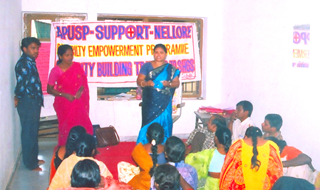Organizing people with Disabilities to form into Self Help Groups towards their Socio - Economic Development through micro enterprising in Nellore, Venkatagiri, Tenali, Bapatla and Repalle Towns of Nellore and Guntur Districts during 2007 and the interventions are still going on. The SHGs are facilitated and linked with the local banks for availing loans for establishing various enterprises. The SHGs federations are capacitated and monitored by MEPMA and SUPPORT on periodical basis. Supported by: MEPMA-Govt. of AP